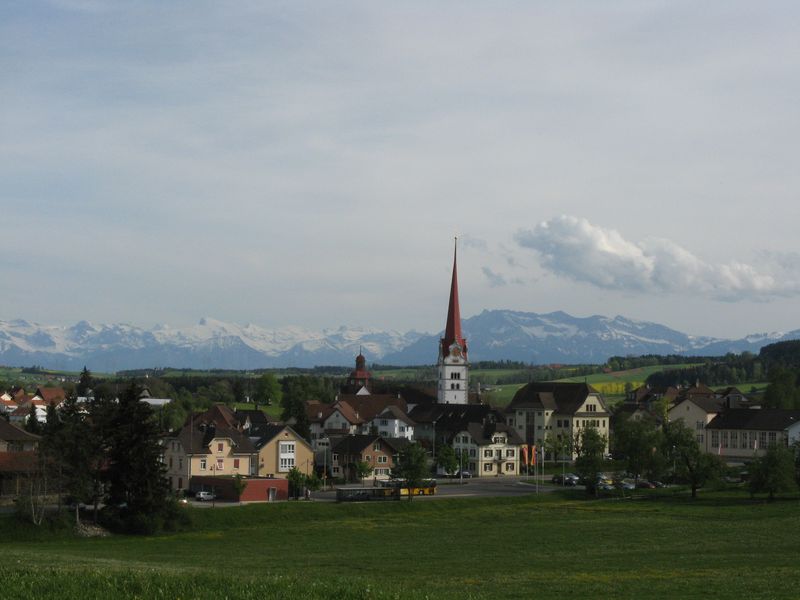 Wieder auf dem Heimweg: Beromünster mit Pilatus im Hintergrund |
