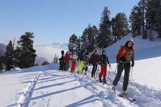 Wir stiegen nun durch verschneite Föhrenwälder hoch, der Himmel war tiefblau, die Sonne schien in ihrer ganzen Pracht.