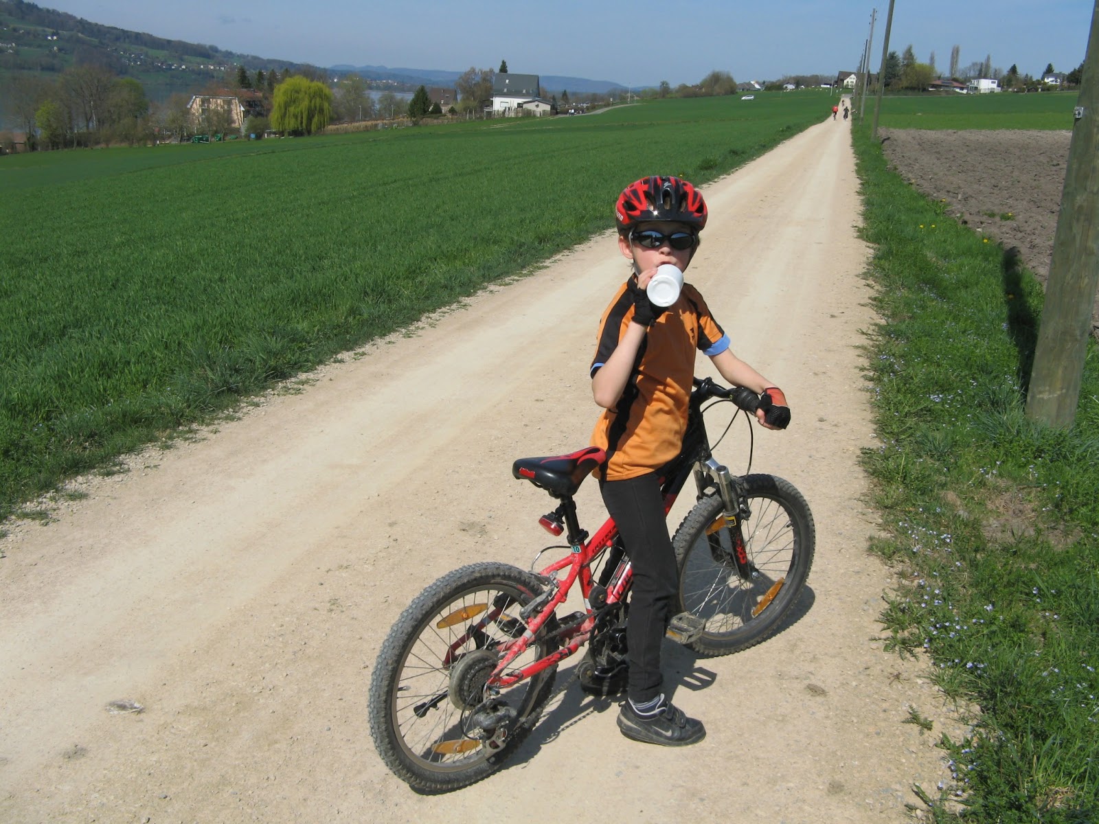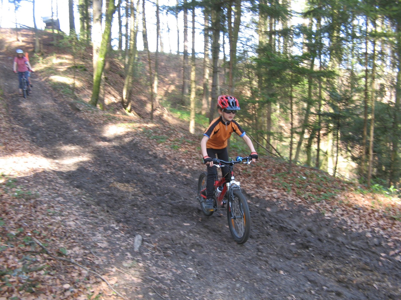 Vor Schwarzenbach müssen wir uns entscheiden: Sind wir Biker und wollen ein bisschen Abenteuer, oder sind wir Velofahrer und haben es lieber gemütlich? Biker biegen links in den Feldweg ein, der sie zum Wald führt und fahren über ruppige Waldstrassen zur Höchweid und nach Ermensee hinunter.