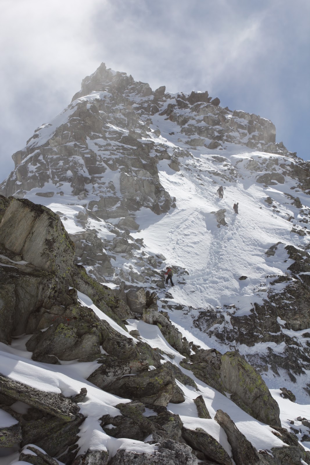 Nach einigen Spitzkehren hatten wir diesen erreicht. Wir stärkten uns erst mal, bevor wir den Rest zu Fuss zurücklegten. Dieser Rest entpuppte sich allerdings als alpintechnische Herausforderung.