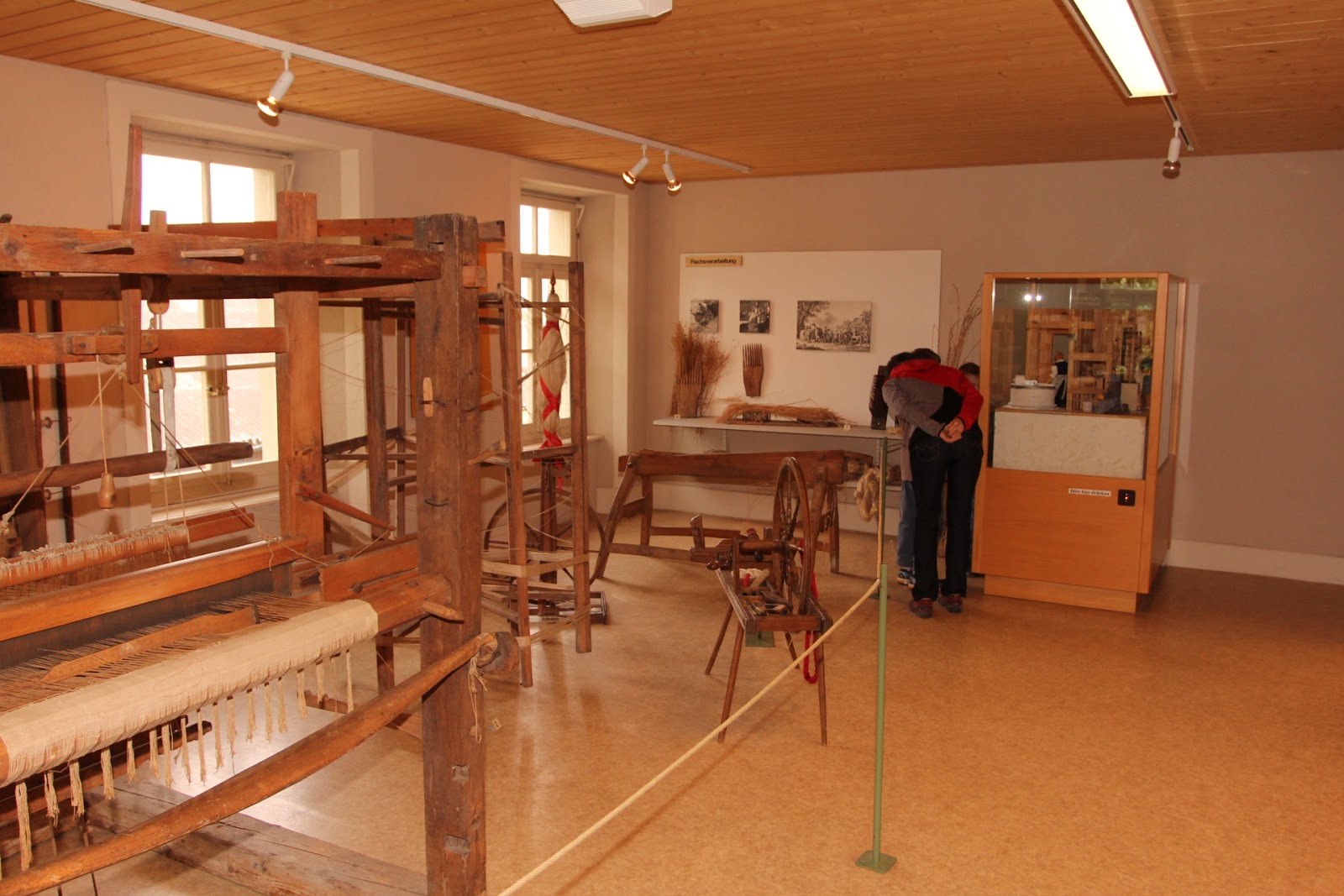 Im Hauptgebäude finden wir eine Ausstellung zum bäuerlichen Leben und über Bienen. Wir erfahren Aufschlussreiches über die Entwicklung der Schweizer Landwirtschaft. Bis Mitte des 19. Jahrhunderts wurde hauptsächlich Ackerbau betrieben, nur in der Alpwirtschaft dominierte die Milchproduktion. Ab diesem Zeitpunkt wurde aber der Ackerbau wegen den billigen Importen aus Österreich-Ungarn und Russland und sogar aus Übersee unrentabel, man verlegte sich nun auf die Milchwirtschaft, was aber die Alpenregionen konkurrenzierte.