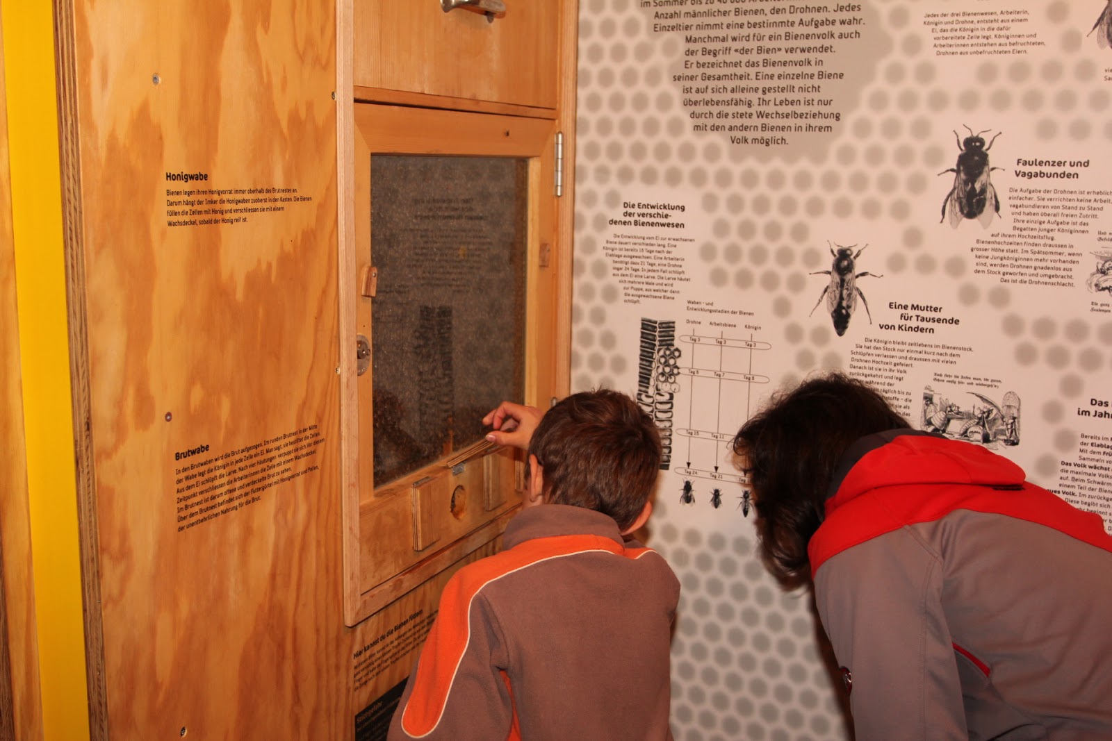 Im ersten Stock ist viel Wissenswertes über die Bienen zu erfahren. Wissen Sie, wie Bienenwachs entsteht? Oder woraus Bienen den Waldhonig herstellen?