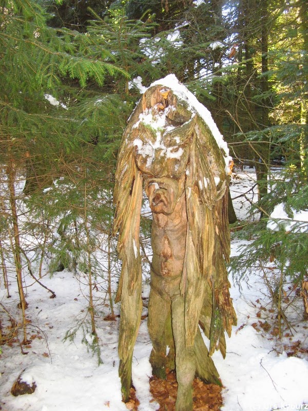 Wir befinden uns übrigens auf einem Sagenweg, wo wir allerhand schauerliche Geschichten lesen und auch diesem schaurigen Gesellen begegnen:
