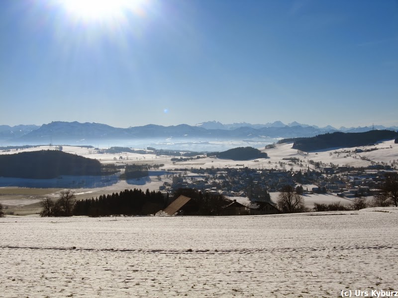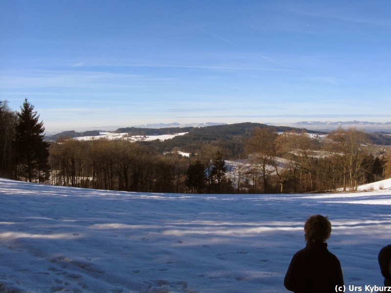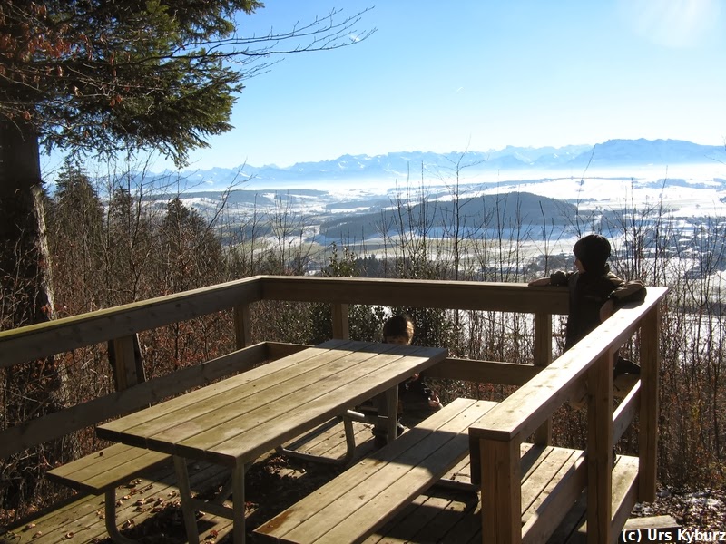 Ausblick vom "Ottiger Bänkli" gegen Süden mit dem Pilatus links |