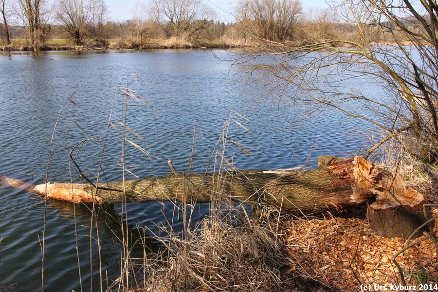 Vom Parkplatz in Rottenschwil aus starten wir. Schon bald treffen wir auf die Spuren unseres Lieblingstieres, dem Biber.