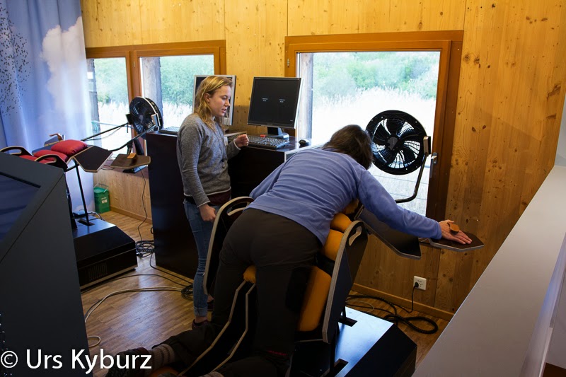Eine Sendung von Einstein, der Wissenssendung von SRF, konnte auch unseren Gipsträger überzeugen. Auszuprobieren gab es dort nämlich einen Vogelflugsimulator: Man legt sich auf ein Gerüst, das sich je nach Fluglage neigt, setzt eine 3D-Brille auf und verwandelt sich dann so in einen Vogel. Und tatsächlich: Man fühlt sich dann wirklich wie ein Vogel, die Arme werden zu Flügel, man schwebt über Landschaften, kann im Sturzflug nach unten stechen und auch landen. Oder abstürzen.