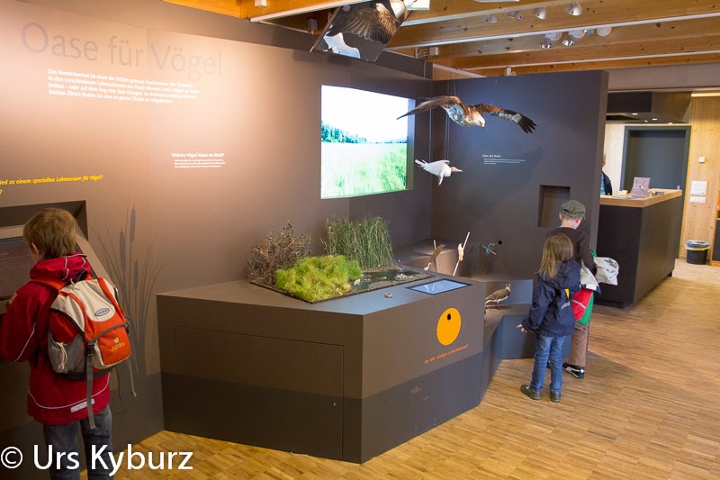 Wir schauen uns noch den Rest der Ausstellung an, bevor wir das Zentrum verlassen und aussen rum das Ried aus einer anderen Perspektive anschauen. Auch wenn die Kinder anderer Meinung sind, es hat sich gelohnt, sahen wir doch noch ein paar Schafstelzen.