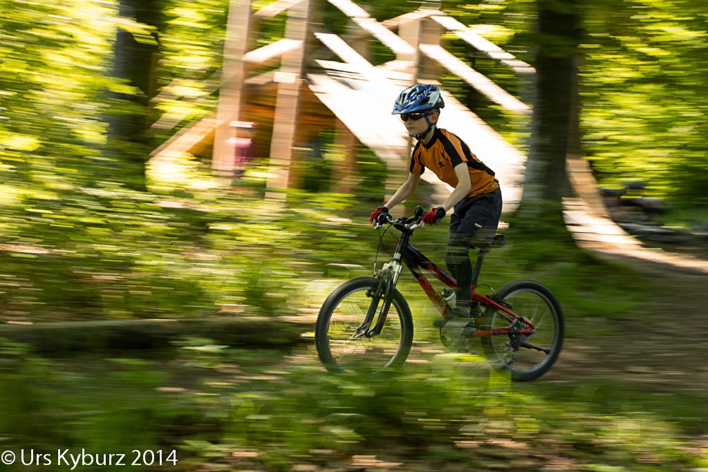 Schlussendlich langten wir beim Bikepark an. Ein Infotafel gab uns eine Übersicht über die Möglichkeiten. Die einzelnen Posten waren wie auf den Skipisten je nach Schwierigkeit in blaue, rote und schwarze unterteilt. Wir begnügten uns mit den einfachen, die sorgten aber schon für ziemlich viel Spass. Wippe, Kamelbuckel, Northshore und so weiter. Die grosse Rampe wurde Fabian aber zum Verhängnis, ein Bremsfehler liess ihn einen Abgang über den Lenker machen.