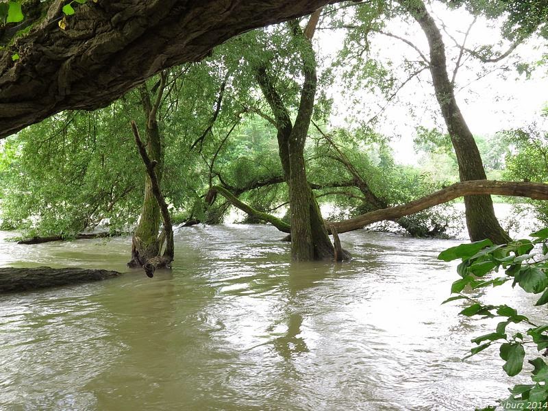 Wir erreichten die Aare, die ziemlich viel Wasser führte. Dort fanden wir auch einen Wegweiser: "Olten 3 h 55 min.". Aha. Mit soviel hätte ich jetzt nicht gerechnet. Aber wir hatten ja, wie gesagt, Zeit. Eben noch in der Stadt, waren wir nun im Wald direkt an der Aare ganz alleine unterwegs.