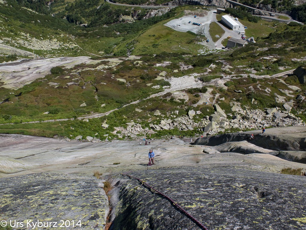 Charakter: Schöne Mehrseillängenrouten, alles auf Reibung. Ideal, um die Fusstechnik zu trainieren. Man muss für das Gebiet lärmresistent sein (also eigentlich nichts für uns), denn man hört leider die kreischenden Motoren der übermotorisierten Zweiräder nur allzu gut. Keine Ahnung, was das Vergnügen sein soll daran, ganze Alpentäler mit dem Krach zu überziehen.