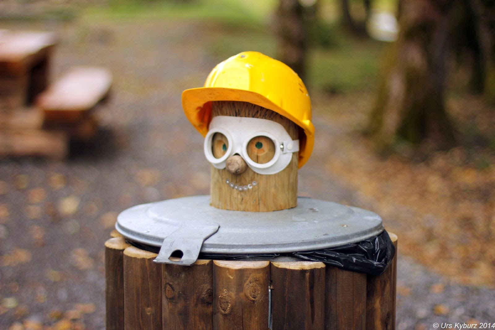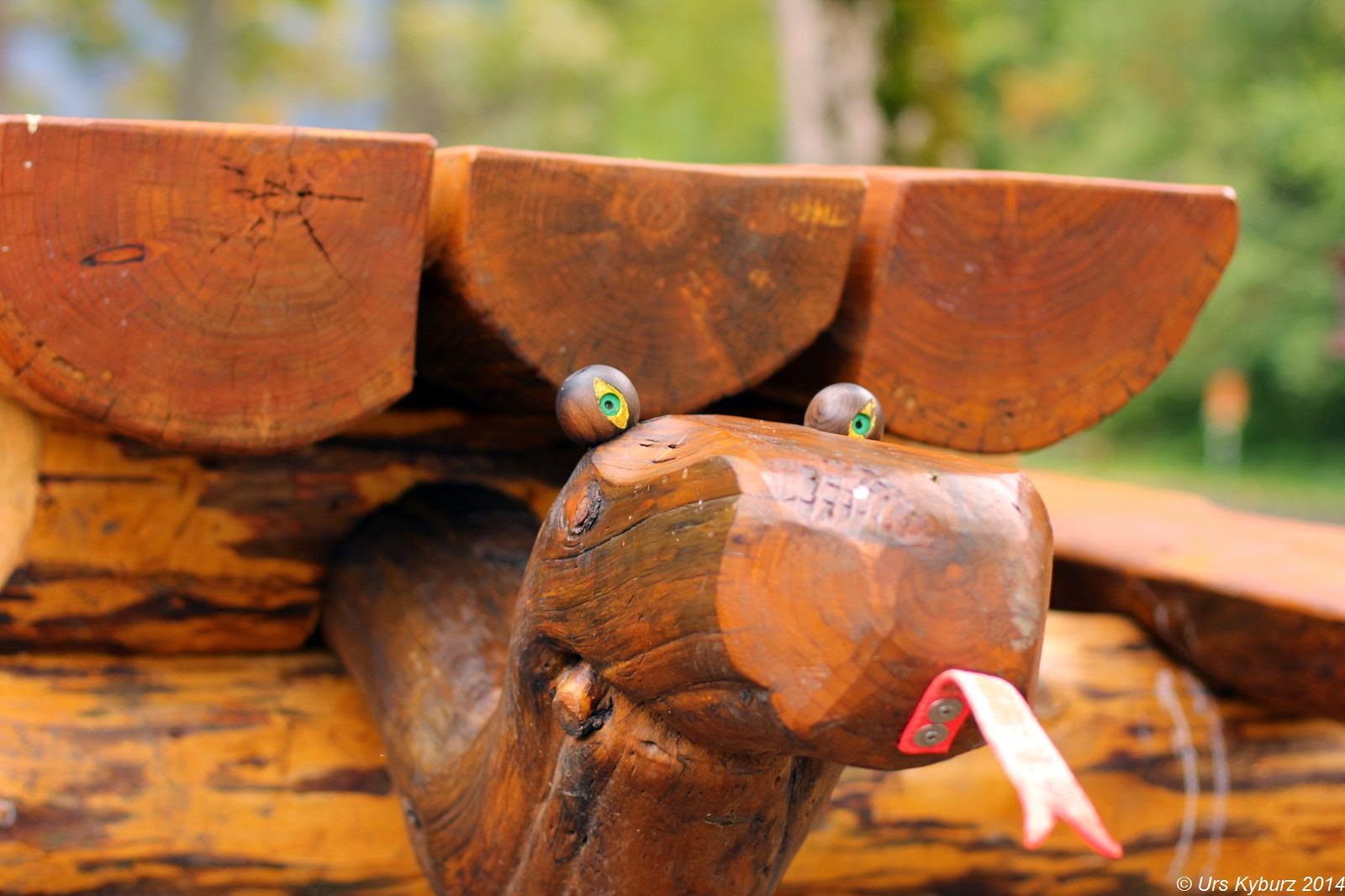 Gleich neben den Winter-Fun-Anlagen fanden wir einen grossen Picknick-Platz vor. Schöne Tische und Bänke mit originellen Verzierungen laden zum Verweilen ein. Derweil können sich die Kinder an der kleinen Kletterwand oder auf der Finnenbahn austoben. Bei schönem Wetter, was bei uns nicht der Fall war.