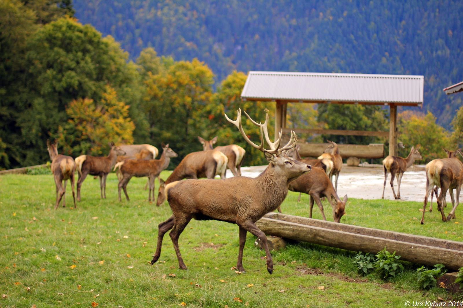 Hinter dem Rastplatz trafen wir ein riesiges Gehege an. Und irgendwann entdeckten wir auch die Hirsche, ein ganzes Rudel mit ihrem Obermacho. Stolz schritt er zwischen uns und seinem Harem hin und her, als wollte er sagen: „Schaut her, was für ein toller Hirsch ich bin!“ Wir setzten unseren Spaziergang fort durch den herbstlichen Wald. Überall zwitscherten und krächzten Vögel: Meisen, Goldhähnchen, Eichelhäher. Zu sehen bekamen wir sie selten, schon gar nicht mit dem Feldstecher. Ständig waren sie in Bewegung, kaum hatte man einen Vogel ausgemacht, war er auch schon wieder verschwunden.