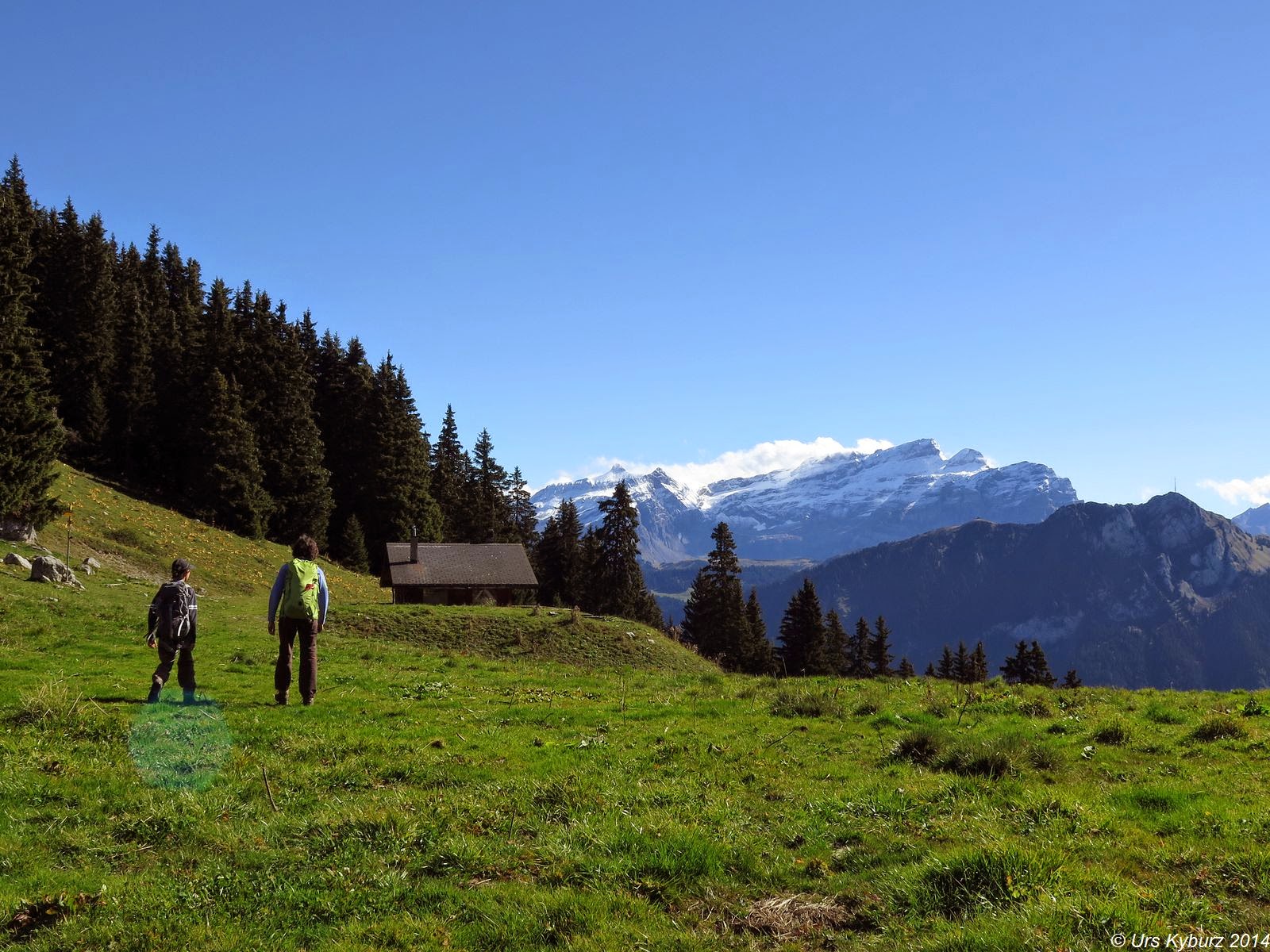 Familientauglichkeit: Sehr gut möglich bis Prafandaz (Trapperpfad für Kinder). Weiter über La Riondaz mit grösseren Kindern, keine besonderen Schwierigkeiten.