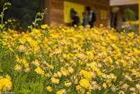 Da heute Samstag ist, öffent das Zentrum erst um 13 Uhr. Wir machen es uns also auf den Sitzgelegenheiten bei der Bienenwiese gemütlich und essen erst mal was.