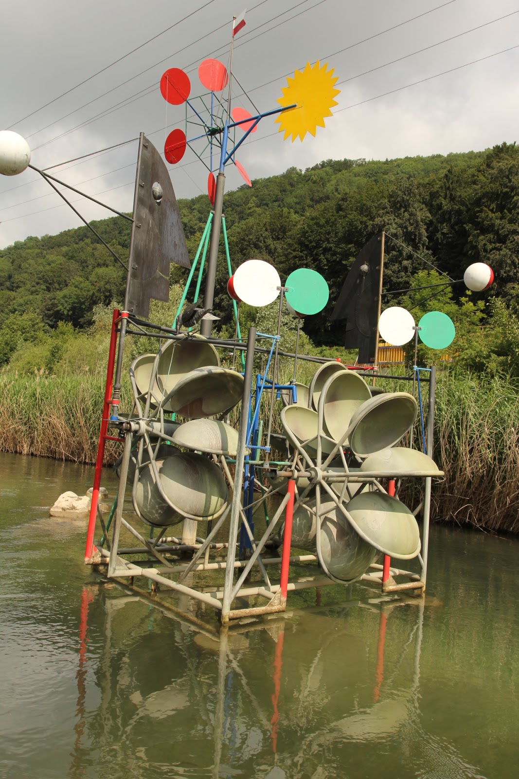 Weiter geht die Fahrt der Hauptstrasse entlang zum Kraftwerk Ruppoldingen. Eine Fischtreppe ermöglicht es den Fischen, das neue Kraftwerk zu umgehen (resp. umschwimmen). Weniger beeindruckt dürften sie vom Kunstwerk sein, das diesen Kanal ziert.